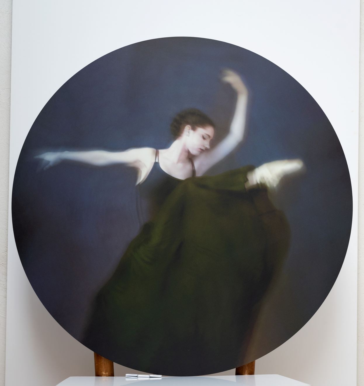 “Groene Ballerina”, afgedrukt op een ronde witte aluminium plaat